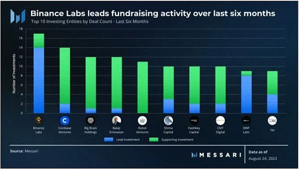 最近加密货币市场低迷是不争事实,而币安的一系列“挺身而出”的动作似乎在向业界表达自己对Web3未来潜力的信心。根据Messari披露数据显示,币安是过去六个月中最“多产”的投资方,而且80%以上的投资交易都是以“主要投资者”的身份参与的。