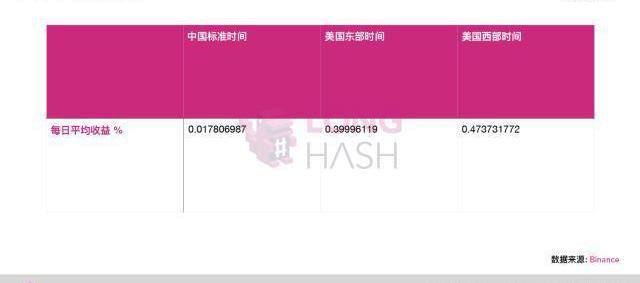 事实上,当我们考虑不同时区的每日收益率均值时,我们会发现大体上来说,比特币在亚洲交易时段内几乎没有任何价格涨幅,几乎所有的上涨行情都发生在美国交易时段。
