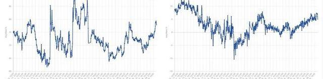 上周曾说到,以太坊隐含波动率相对于现实波动率出现一定的折价,当时入场似乎都不算太晚。在本周,由于投资者对于币价一致预期的修正,隐含波动率的折价空间已经被交易掉了。观察图像我们可以发现,现在以太坊的隐含波动率相对于现实波动率处于溢价状态,预期已经走在价值之前。