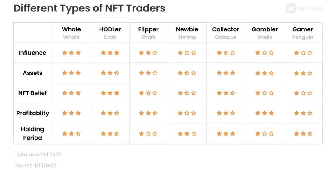 巨鲸在海洋中扮演的角色是吞食小鱼,通过扫地板等一系列行为引起海面上的波动,那么,NFT的海洋里还有哪些其他类型的交易者呢?