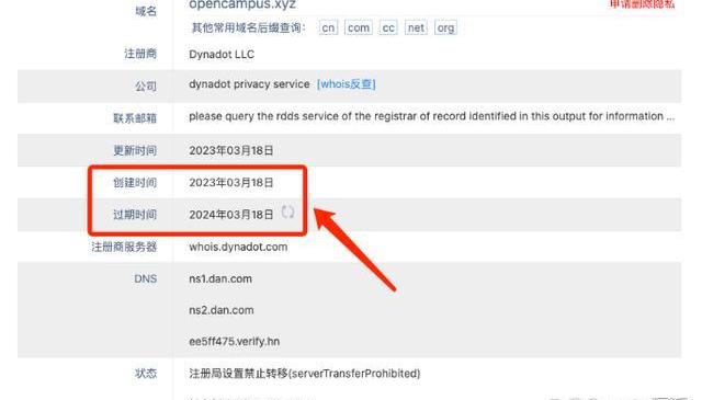 其次是官网域名的注册时间是一个月前3月18号,并且只购买了一年,咱们就这么差这点钱吗不能一次性多续费几年吗哈哈,至少表个态嘛,这就买了一年让人不由自主的遐想...