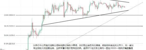 虽然BTC在过去三周内一直在28000一线附近横盘整理,但今年仍保持在70%左右的涨幅,较上个月20000的低点位置上涨了43%。从技术角度来看,比特币非常适合突破,最近形成了看涨三角旗形结构。