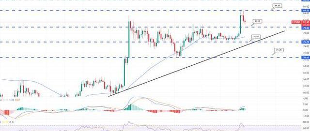 LTC/USD目前交易价格为81.35美元,24小时内上涨超过9%,每周上涨超过10%。