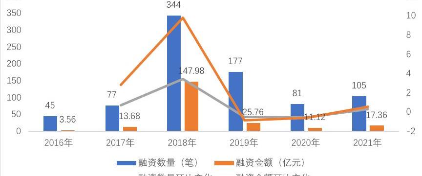 图7.2016-2021年中国区块链公司/项目融资数量和金额