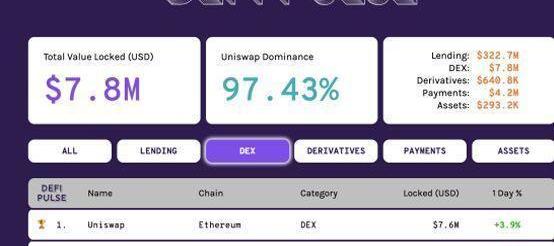 同时,去中心化交易市场对其的反应也随之升高,目前超过780万美元的以太坊或ERC20通证被锁定在该协议之中。按照现有的增长速度,Uniswap是当前增长最快的去中心化交易协议。