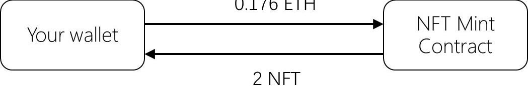 简单来说购买过程就是你的钱包和NFT合约进行交互,从你的钱包转账0.176ETH到合约,调用合约mint方法后,生成两个NFT代币,代币转移到你的钱包,你获得这个NFT。