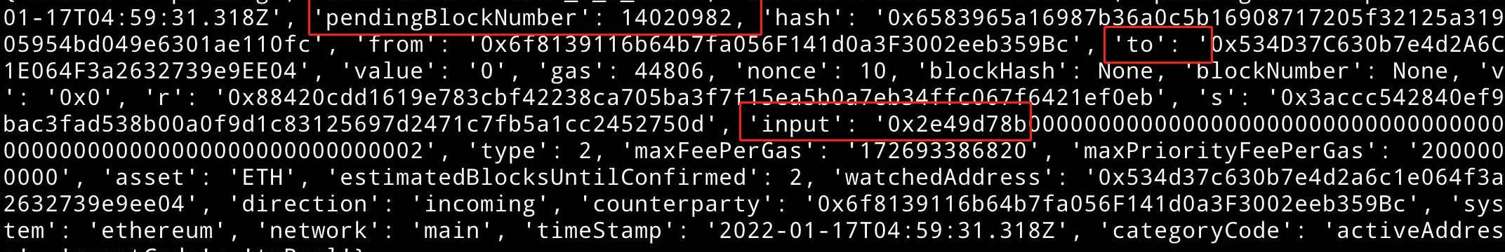 gasLimit–交易可以消耗的Gas的最大数量。单位gweito–接收地址nonce–用于跟踪账户已执行的交易总数value–从转账ETH的金额data–和合约交互,调度mint函数,mint数量2个Function:mint(uint256tokenQuantity)MethodID:0xa0712d68:0000000000000000000000000000000000000000000000000000000000000002maxPriorityFeePerGas-作为矿工小费包含的最大gas数量maxFeePerGas-愿意为交易支付的最大gas数量2、TX签名