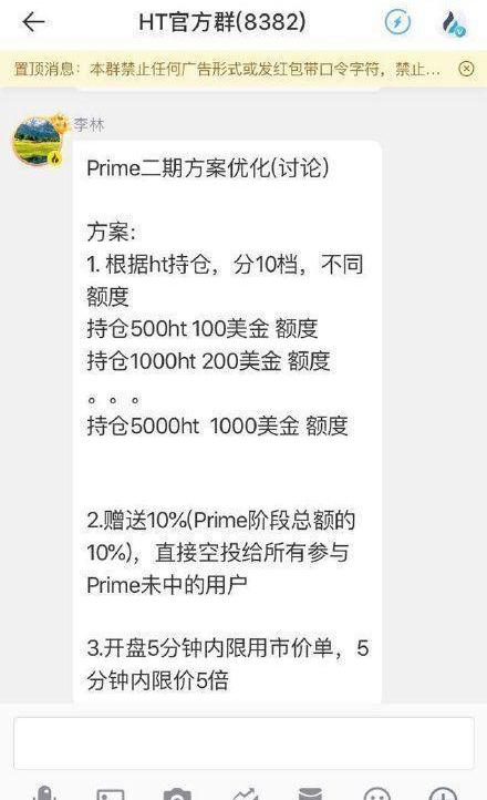 李林还会亲自出马,公然在8000人的HT官方群征集Prime二期优化方案。
