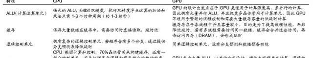 GPU和CPU最大的区别是设计结构及不同结构形成的不同功能。CPU的逻辑控制功能强,可以进行复杂的逻辑运算,并且延时低,可以高效处理复杂的运算任务。而GPU逻辑控制和缓存较少,使得每单个运算单元执行的逻辑运算复杂程度有限,但并列大量的计算单元,可以同时进行大量较简单的运算任务。此外,CPU的核心数量只有几个,每个核都有足够大的缓存和足够多的数字和逻辑运算单元,并辅助很多复杂的计算分支。而GPU的运算核心数量则可以多达上百个,每个核拥有的缓存大小相对小,数字逻辑运算单元也少而简单。