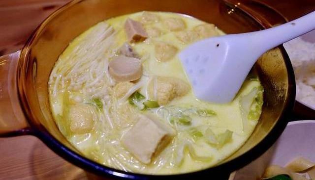 素菜馆的招牌菜菩提砂锅,郭大王独创,全上海仅此一份,奶黄色的汤头是重头戏,浓浓的椰香里还透着一丝咖喱香,喝起来馥郁醇香却丝毫都不厚重,让人忍不住盛完一碗又一碗!