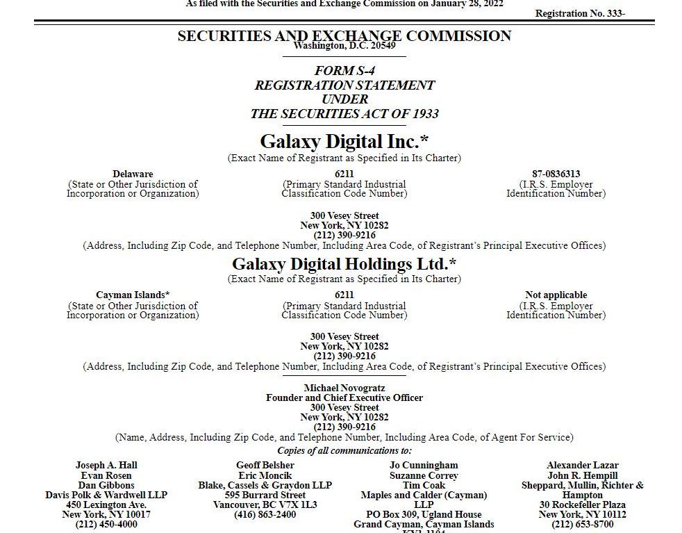 据CoinDesk1月28日消息,数字资产公司GalaxyDigital向美国证券交易委员会(SEC)提交了一份注册声明,申请从开曼群岛迁至美国特拉华州,该公司还计划在纳斯达克全球精选市场上市其A类普通股,拟议的股票代码为“GLXY”。GalaxyDigital由MikeNovogratz创立,目前在多伦多证券交易所上市,交易代码同为“GLXY”。新申请正在接受美SEC审查,上市取决于证券交易所的批准。拟议的注册变更还需得到GalaxyDigital股东和包括多伦多证券交易所在内的监管机构批准。