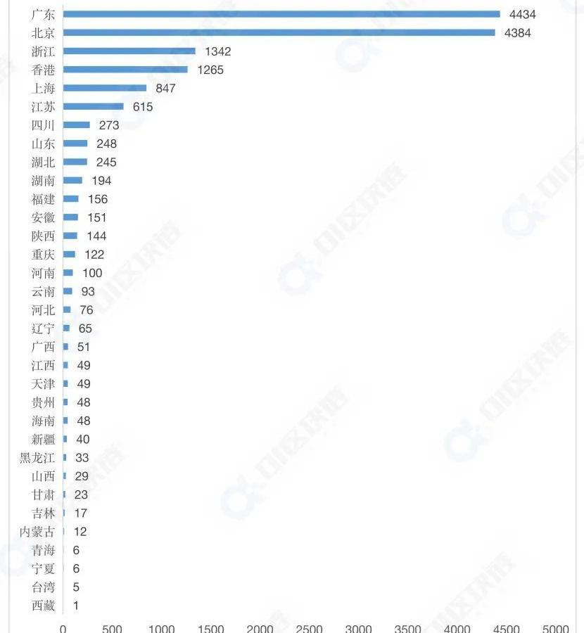 在当前中国申请的15985项区块链专利中,有15171项发生在中国境内。2021年参与申请专利涉及多个省份,从地区分布上,区块链申请主要发生在广东省、北京市、浙江省、香港、上海市,和江苏省,内申请数量最多的前五个省份与上年相同,此外,四川、山东、湖北、湖南等地区区块链专利申请数量在2021年也取得不错的排名。