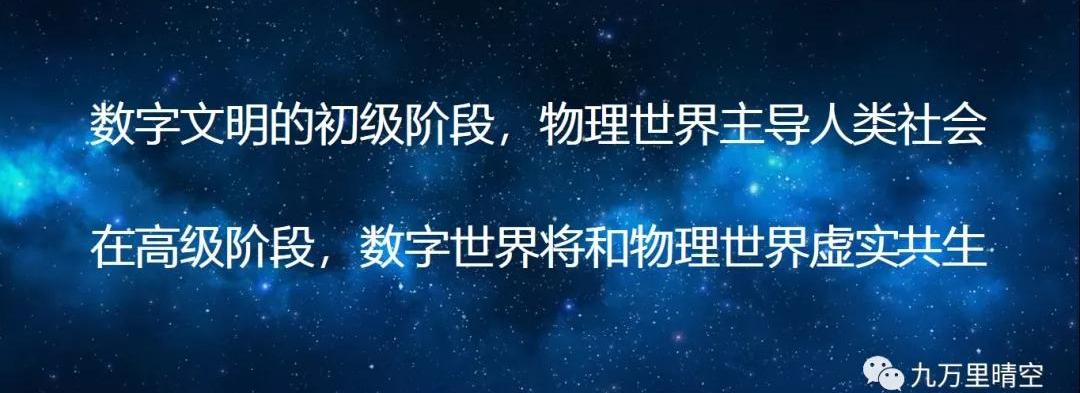 之所以本文把现阶段的数字文明定义为初级阶段,最重要的衡量指标是人类社会的数字化还没有达到高级阶段的程度,即数字化率还处于比较低的阶段,距离全面数字化还有很长的路要走。如前所述,在数字文明的初级阶段,物理世界主导人类社会,在高级阶段,数字世界将和物理世界虚实共生!