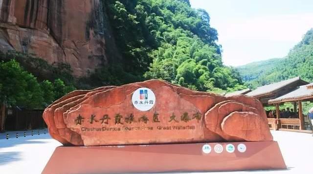 大瀑布在景区尽头,可以沿水边徒步,一路风景不错。不想走太多路路好像也可以坐一段观光车。赤水大瀑布,瀑布从红色丹霞悬崖上倾泻而下,气势磅礴,它高76米,宽80米,比黄果树瀑布还高8米。