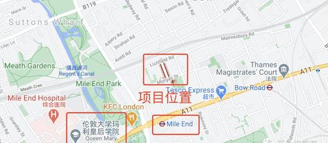 位置:伦敦东二区,政府重点打造区域,Bromley-by-Bow地铁站旁