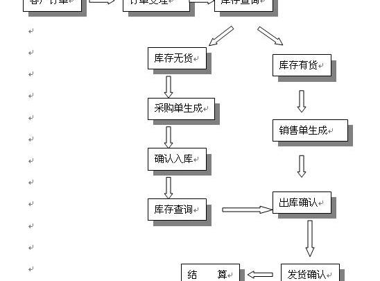 1.订单管理。定单管理主要涉及到搜集,显示、查询订单内容,可根据订单号、用户名查询订单,并显示订单详细信息。确认从前台发送过来的定单,或者直接导出到外部系统。订单管理可实现单次及批量订单,订单管理与库存管理相连接,并且在下订单时有库存预警及提示功能,订单管理同时与客户管理相连接,可查询历史订单情况以及订单的执行情况。