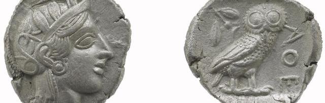 雅典定下了雅典钱币的标准图像:正面是雅典的守护神雅典娜的头像,背面是猫头鹰和橄榄枝以及象征雅典的文字:ΑΘΕ。