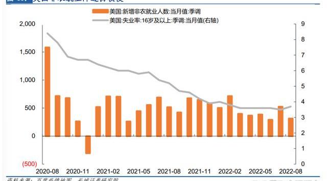 我们认为,美国劳动力市场处于一种过热但不稳定的状态,绝大部分新增就业都在弹性较大的服务业。8月服务业新增就业26.3万人,占新增就业总人数的83%,而7月时该比例为78%。服务业就业的弹性较高,一旦需求遇冷,就业人数可能快速出现大幅下滑。但目前来看,美国新增非农就业是否能够持续回落、失业率是否能够持续回升还有待观察,主要取决于美联储加息进程。