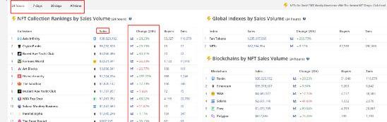 这个网站主要针对NFT领域,也是“权威”网站,数据有疑问的话可以去这里核对,毕竟Nonfungible.com还对一些项目的NFT资产进行价值评估。