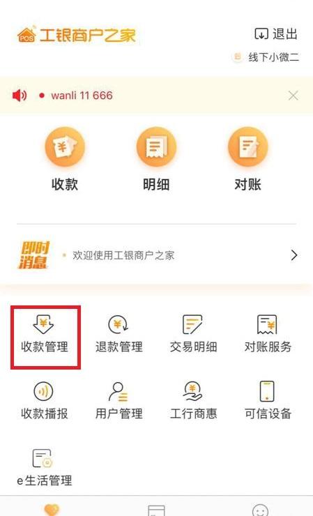 1.登录工银商户之家App,进入“收款管理”