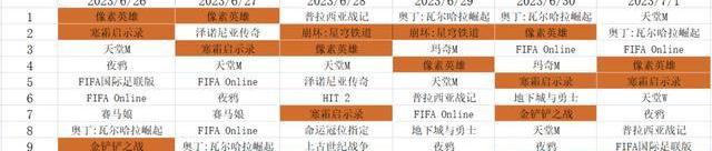 最值得一提的是网易,六月底两款新游连发,6月20日上线的《巅峰极速》稳定在Top5,6月30日上线的《逆水寒》手游进入Top3,本周网易每日2-3款游戏上榜,除两款新游外,还有《梦幻西游》《蛋仔派对》《阴阳师》。
