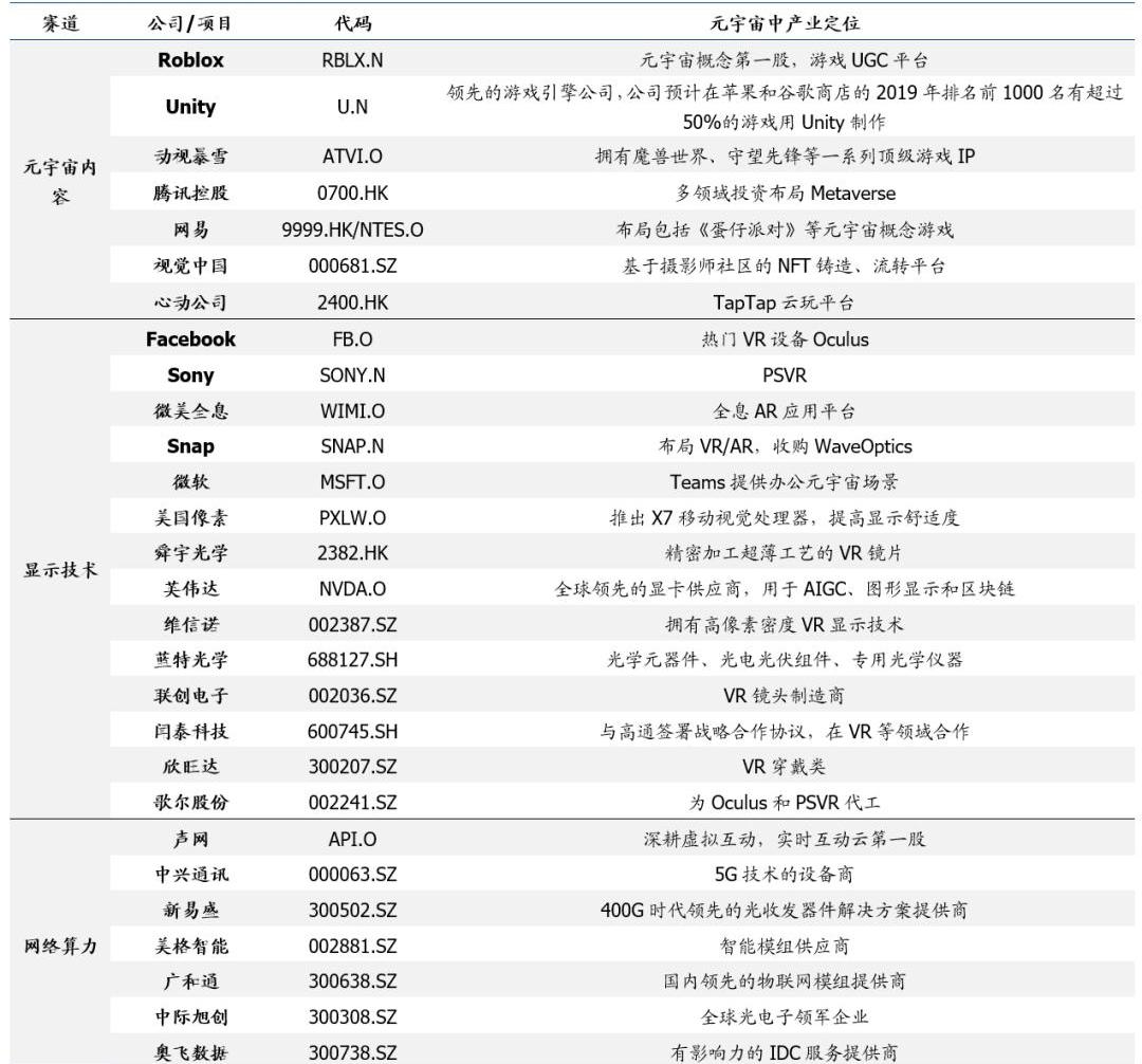 DAO加速元宇宙落地,布局“BAND”赛道。我们预计未来5年将有越来越丰富的元宇宙网络形态出现,推动“BAND”四大技术赛道升级,个体也将以DAO的形式更方便地参与其中。1)游戏:Roblox、Unity、腾讯控股;2)显示技术:Facebook、Sony、舜宇光学、歌尔股份、蓝特光学;3)网络及计算力:英伟达、AMD声网、中兴通讯、新易盛、中际旭创、广和通、美格智能。同时,我们也建议关注区块链公链基础设施和元宇宙概念项目的演变发展。