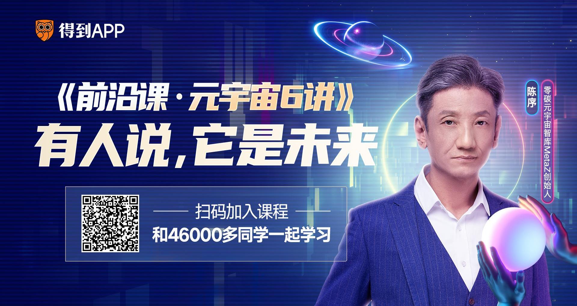 如果你想在苏州元宇宙大会上与陈序更深入的探讨元宇宙的创业和投资机会,不防可以先去得到APP听听这门元宇宙入门课——《前沿课·元宇宙6讲》。