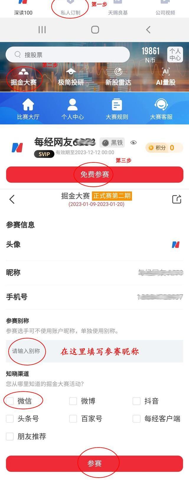 首先下载每日经济新闻APP,然后打开每日经济新闻APP,点击“私人订制”,点击左上角的“掘金大赛”,点击“免费参赛”,然后输入参赛昵称,选择知晓渠道,就能报名了。需要注意的是,只有在报名时才能取参赛昵称。