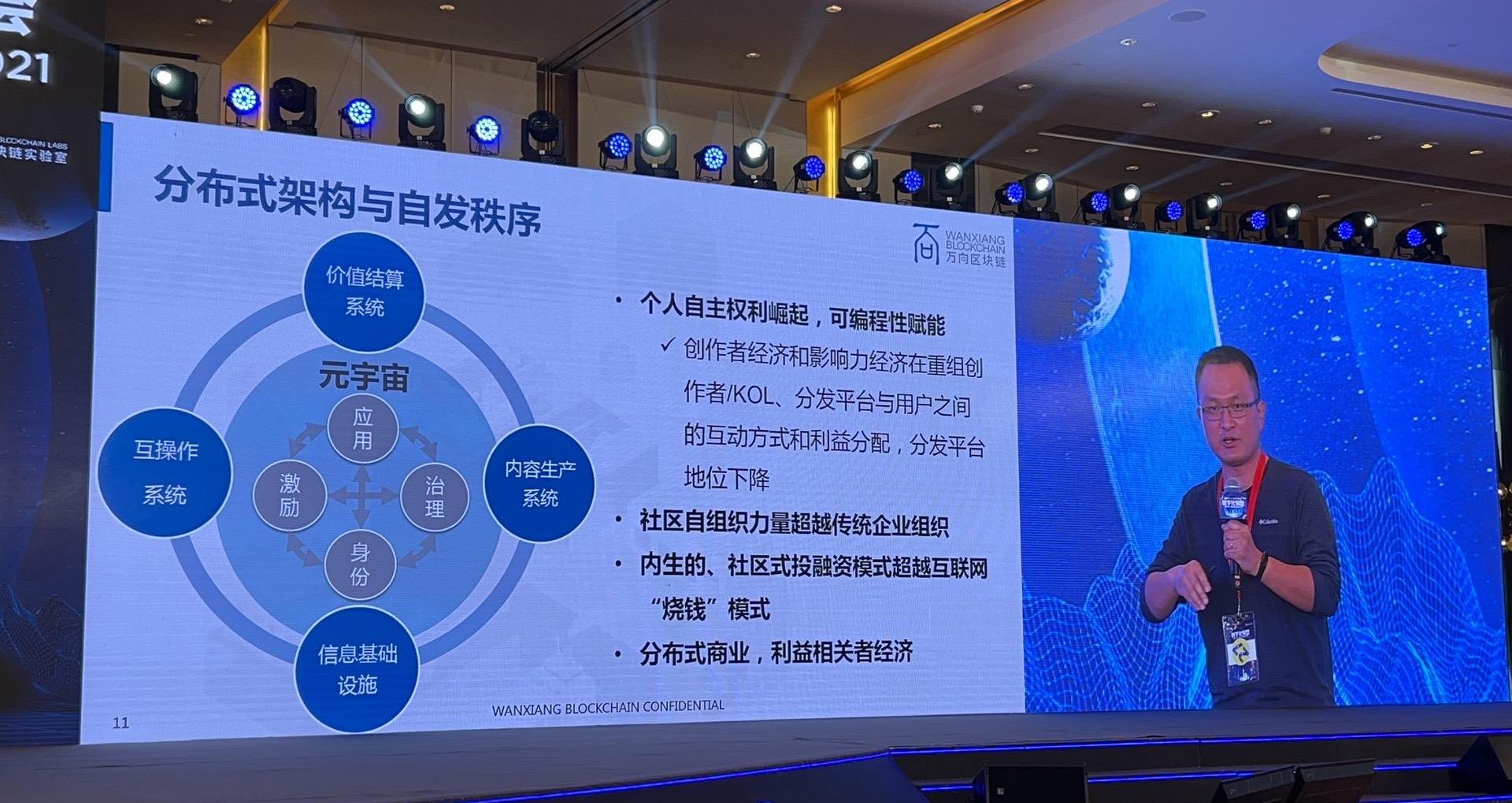 巴比特现场报道,10月27日,由万向区块链实验室主办的第七届区块链全球峰会在上海举行,万向区块链首席经济学家邹传伟发表《元宇宙经济学》主旨演讲。他表示,分布式架构包括价值结算系统、内容生产系统、互操作系统和信息基础设施。元宇宙中更主张自发秩序,个人自主权利崛起,可编程性赋能。创作者经济和影响力经济在重组创作者KOL、分发平台与用户之间的互动方式和利益分配,而分发平台的地位下降。另外,社区自组织力量超越传统企业组织。内生的、社区式投融资模式超越互联网“烧钱”模式。分布式商业是利益相关者经济。