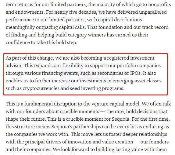 红杉还计划成为注册投资顾问,这可能会让它扩大在加密货币和二级市场等领域的投资。该公司还告诉投资者,它不打算公开上市。