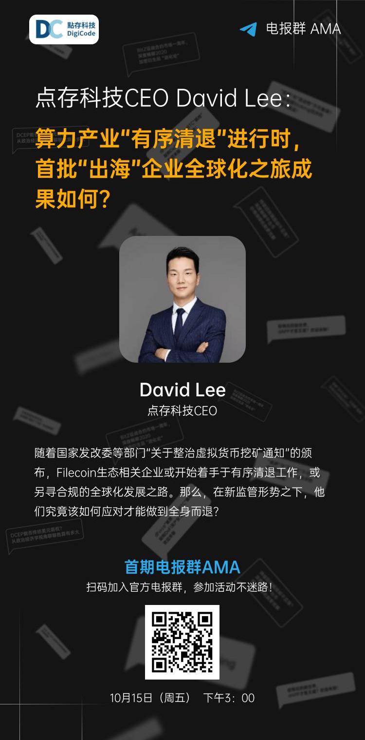 Filecoin存力如何出海?点存科技可提供怎么样的迁移方案?10月15日,点存科技CEODavidLee将开启一场线上AMA,与社区、从业者深度交流,共享经验。