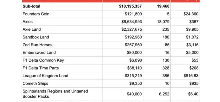 此外还有一些收入或者潜在收入没有被强调,但需要投资者留意,因为其所持有的资产是明星资产,例如LeagueofKingdoms、F1DeltaTime、TheSandbox等,YieldGuildGame对此已经进行了市场价值的评估,如下图: