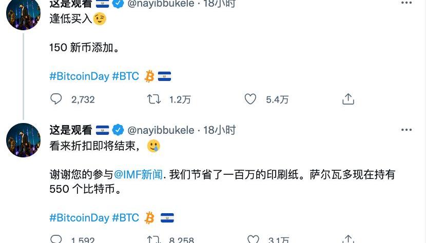 如同对反对者的倔强还击,市场闪崩后,伊布·布克勒淡定地在推特上表示,「逢低买入,新币添加150?枚。」至此,萨尔瓦多持有的BTC增加至550枚。