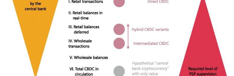 总的来说,我们认为应该结合直接向央行索赔的可信度和私营部门支付服务的便利性。一种可能的架构称为“混合CBDC”,一个关键因素是支撑对央行直接债权的法律框架,即CBDC从未出现在支付服务提供商的资产负债表上,因此不受破产的影响。这样,在PSP破产的情况下,消费者持有的CBDC不会受到影响。