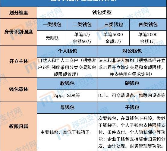 根据不同的维度划分,数字人民币钱包有以下几种类型:?
