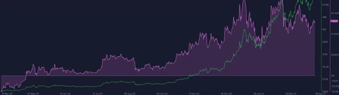 事实上这些指标表明,比特币的价格仍有很大的上涨空间。从历史上看,MVRV的顶部才是价格下跌的起点。?