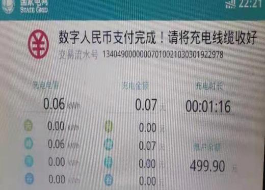 国网雄安供电公司数字人民币充电桩在雄安市民服务中心测试。胡艺凡摄