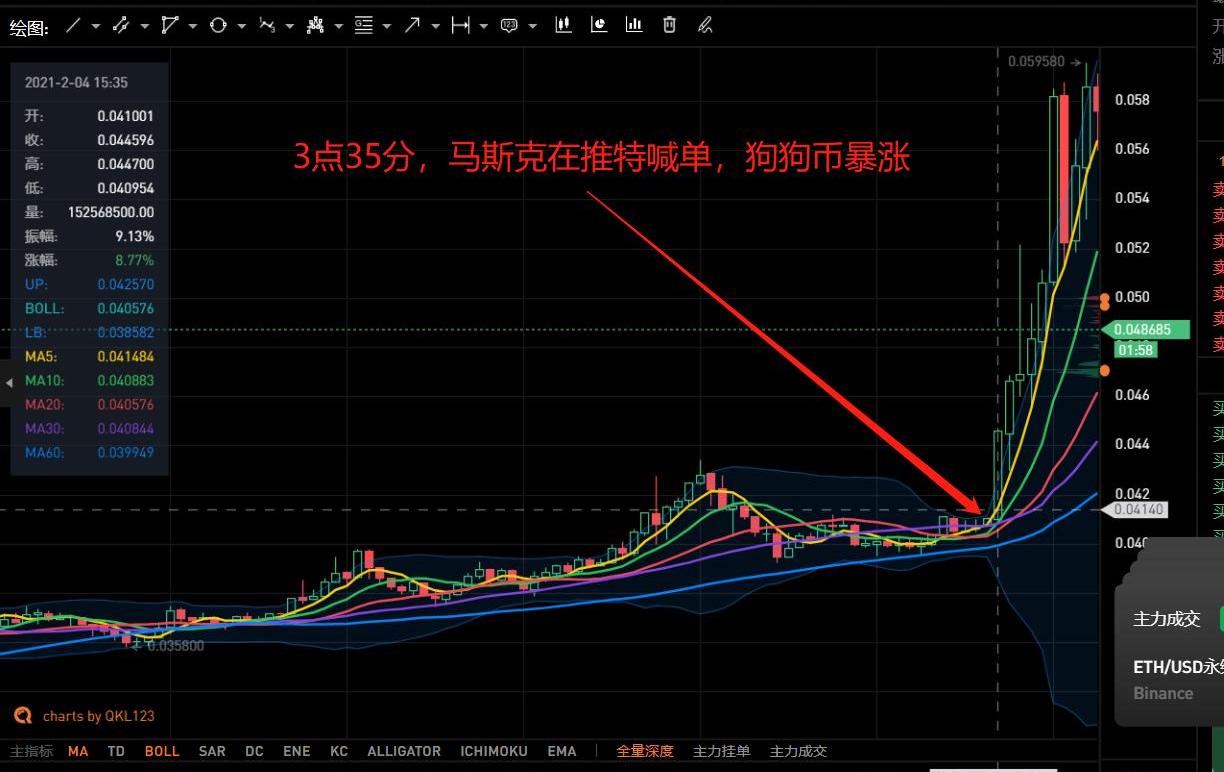 2月4日下午,特斯拉CEO埃隆·马斯克连发三条推特支持DOGE,DOGE短时爆拉,日内最高涨幅超70%。随后有网友质疑马斯克推特账号被盗,狗狗币价格随之也大幅回落。