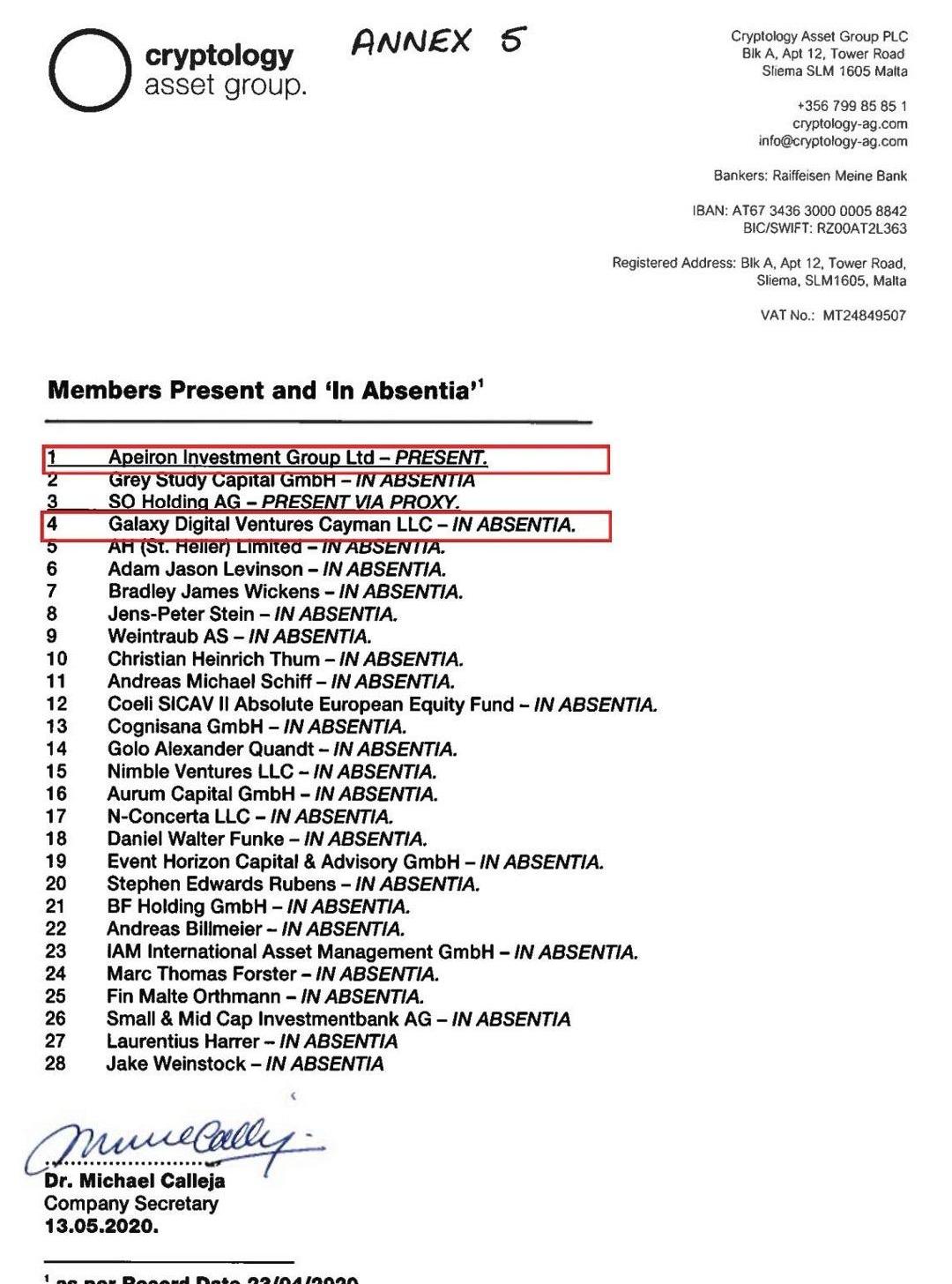 我们看到Christian的投资公司APEIRONGroup。Novograz投资公司GalaxyDigitalVC也拥有Cryptology7%的股份。因此,Novograz还通过Cryptology对Block.one进行了间接投资。