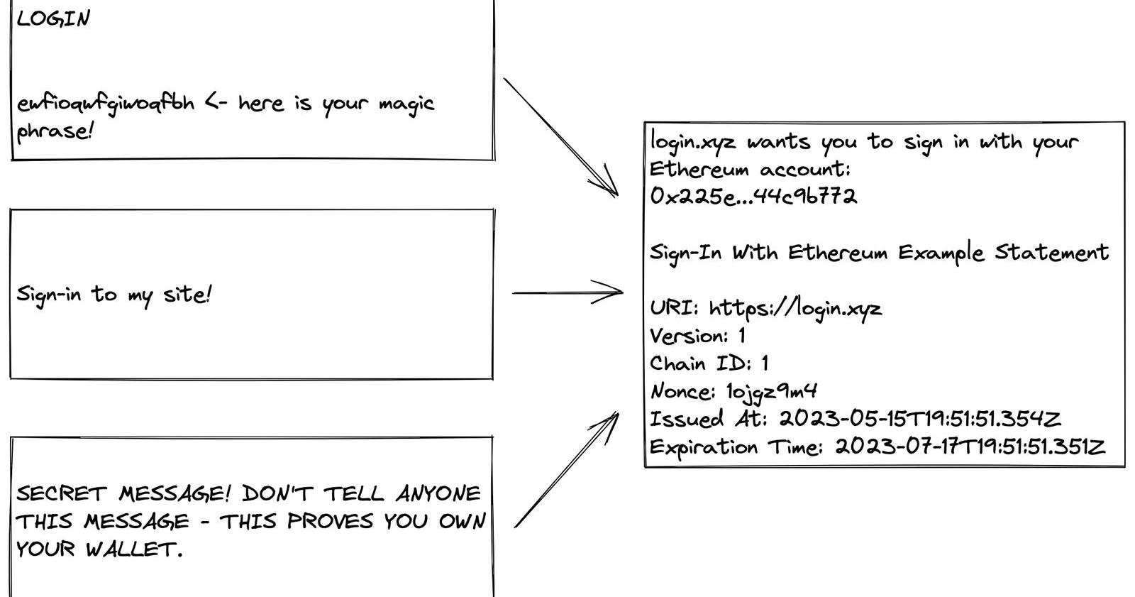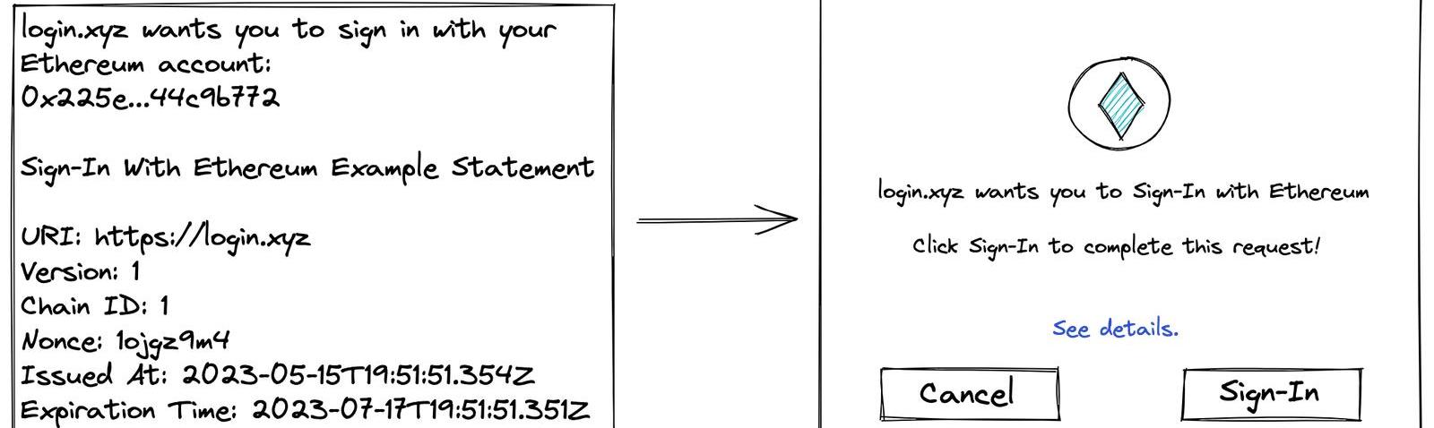 我们可以首先获取所有这些混乱的“使用以太坊登录”消息,并采用一种公认的通用方式向用户展示请求:
