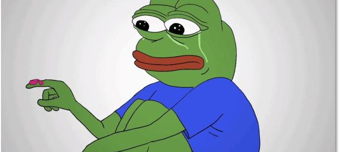 严格来说,PEPE是一种meme币,“meme”是同一个文化氛围中流行的或以衍生方式复制传播的互联网文化。它可以是一句流行语,比如“你大爷永远是你大爷”、“奥力给”,也可以是一个流行的表情包,比如下图这只名叫“pepe”的悲伤蛙,相信你在互联网冲浪时已经见过它无数次了。PEPE币正是抓住了悲伤蛙这个全球流行的meme元素诞生的。