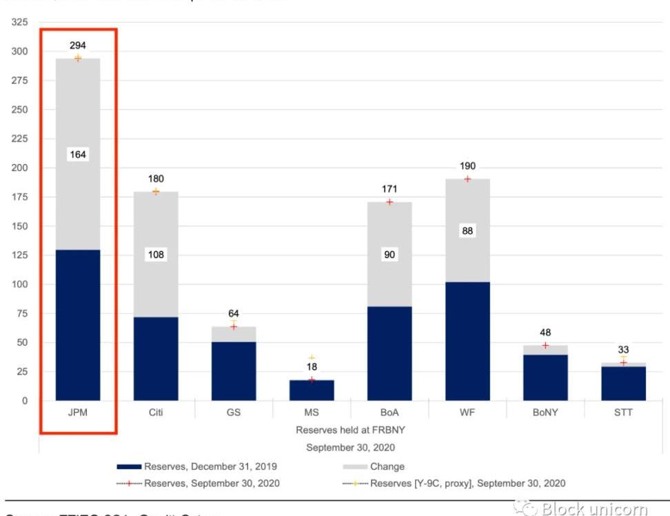 在新的体系中,美联储的许多缺陷很快变得显而易见。每当美国财政部进行「印钞」行动时,国债的利率就会降至目标范围的下限以下。快进到2019年9月,联邦基金利率和回购市场的利率都突破了其目标范围的上限。美联储当时依赖其主力银行JP摩根来重新调整利率。由于在无休止的量化宽松注入后,这家超级银行拥有最多的储备金,它应该成为美联储的最后一道防线。