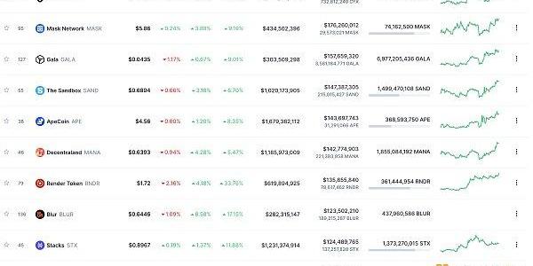 24小时NFT交易量、交易量前十项目数据来源:Coinmarketcap