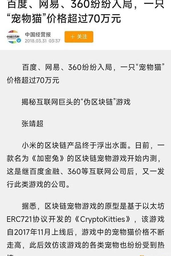 厂商们纷纷下场拥抱AI大模型的架势,让人不由得想起了五年前国内企业纷纷入局区块链养宠物的场景。当时同样是因为国外一款名为CryptoKitties加密猫游戏的爆火,吸引了如百度网易360小米众多国产企业们纷纷下场,推出了基于区块链技术的线上虚拟宠物。其中,2018年2月5日,百度推出了莱茨狗;2月9日,网易推出第二款区块链产品“星球”,免费挖钻石游戏;2018年2月14日,360公司推出基于区块链技术的宠物猫,每位用户可以预约领养一只1代猫,首批限量5万只;2018年3月14日,小米区块链宠物《加密兔》测试版上线。据统计,截止至2018年2月国内共有150款区块链模拟宠物养成类游戏诞生。