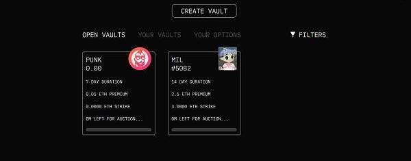 Cally是建立在Ethereum和Optimism上,能为用户所持有的NFT或ERC20Token创建CoveredCallVault的协议。CoveredCall=LongStock+SellOTMCall,即用户持有NFT/ERC20Token的同时,卖出相对应的看涨期权。用户可以为其持有的NFT或xNFTToken来创建CoveredCallVault,目前主要包括BAYC、MAYC、Doodles、Miladymaker和ForgottenRunesWizard'sCult以及这些NFT在NFTX上创建的流动性Token。用户可以选择0.05-2.5ETH的周期收益率,7、14、30和90天的周期持续时间以及拍卖起始价和底价。CallVault被创建完成后,看涨期权就会被列出并开始24小时荷兰式拍卖,行使价不断下降直到感兴趣的期权买家出现。通过Cally,可以帮助一些长期看好某个收藏品,但认为该收藏品在短期内不会上涨的用户赚取期权溢价的利润。