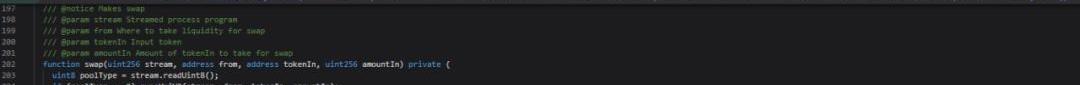 4.在这里可以看到,pool的值是由stream解析而来,而stream参数是用户所能控制的,这是漏洞的关键原因,这里lastCalledPool的值当然也是被一并操控的,接着就进入到攻击者指定的恶意pool地址的swap函数中去进行相关处理了。
