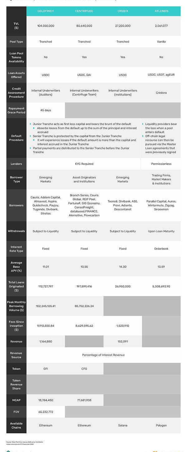 新兴债务市场为投资者提供了有利的风险回报投资组合,从而产生了对此类债务工具敞口的需求。然而,投资者可能会发现难以进入新兴经济体的债务市场。因此,为了解决这个问题,某些信用协议通过连接潜在的贷方和借款人来提供访问和收益。目前为新兴市场借款人提供服务的协议Goldfinch指出,为了尽量减少向仍处于增长阶段的行业提供信贷的风险和不确定性,他们只向历史稳定的成熟信贷基金和金融科技组织提供贷款财务绩效。此外,确保借款人达到令人满意的标准对Goldfinch和Credix,因为自成立以来总违约率一直为0%。
