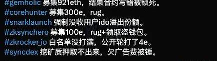 而这些短期内密集发生的项目跑路事件,都发生在备受期待的zkSyncEra链上,zkSyncEra一直被大家认为是一个非常有前景的链,也明确将在明年发币。??