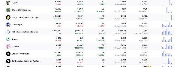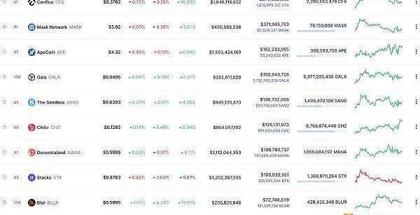 24小时NFT交易量、交易量前十项目数据来源:Coinmarketcap