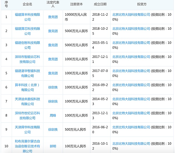 除了这些公开投资,比特大陆还有一众体量相对较小,关注度较低的区块链公司,有意布局AI芯片等领域。